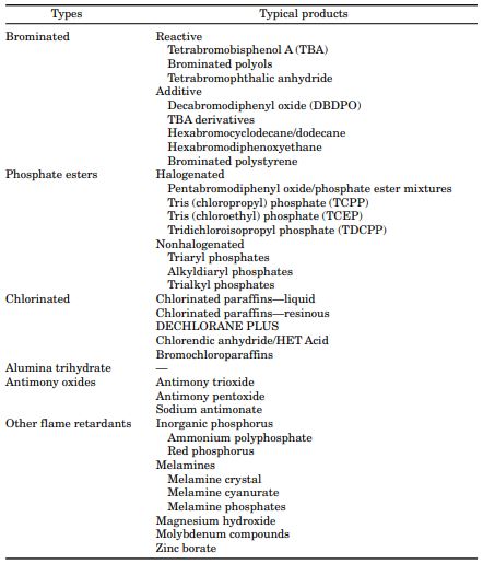 Meski masih ada kekhawatiran tentang senyawa berbasis halogen, produk berbasis brom diperkirakan tetap menjadi pendorong utama pertumbuhan pasar dalam lima tahun ke depan, kecuali di Eropa. Pertumbuhan phosphate ester melambat di Amerika Utara dan Eropa, tetapi masih meningkat di wilayah lain sehingga rata-rata global mencapai 4% per tahun. Flame retardants berbasis klorin mengalami penurunan di Eropa dan pertumbuhannya akan stagnan secara global. Pertumbuhan antimon oksida diperkirakan 3% per tahun, sementara ATH akan tumbuh sekitar 5% per tahun karena menggantikan produk berbasis halogen.